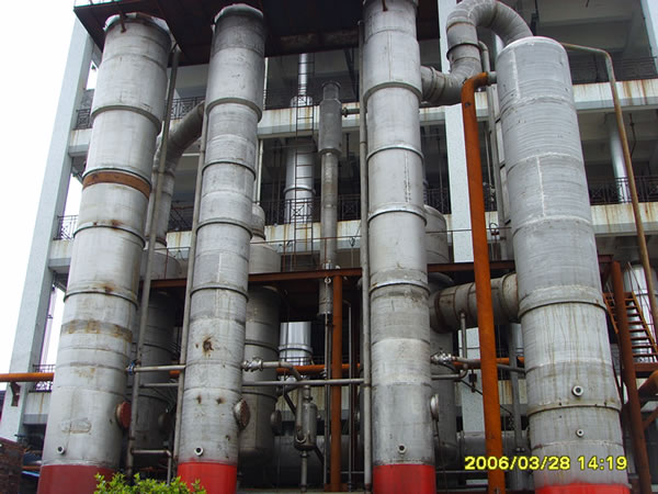 公司還涉足高濃度污水處理行業。經過公司研發(fā)人員的努力,開發(fā)出了YBJXH型強制降膜循環(huán)多效、TVR、MVR蒸發(fā)器用于處理工業污水,并在聯邦制藥成都和內蒙古公司、印度阿拉濱度、煙臺萬潤精細化工等應用成功。另在2002年山東魯洲集團河南公司成功利用管束干燥機的廢熱制造了18噸廢熱蒸發(fā)器,用至現在。其中聯邦制藥成都公司選用的污水處理蒸發(fā)器有:50噸一套,35噸2套,12噸一套;聯邦制藥內蒙古公司選用50噸污水處理蒸發(fā)器共3套;液糖車間YBJM30噸四效降膜蒸發(fā)器2套;YBJM20噸四效降膜蒸發(fā)器2套。印度阿拉濱度25噸1套、15噸3套、10噸1套、5噸1套;2.5噸8套等等。